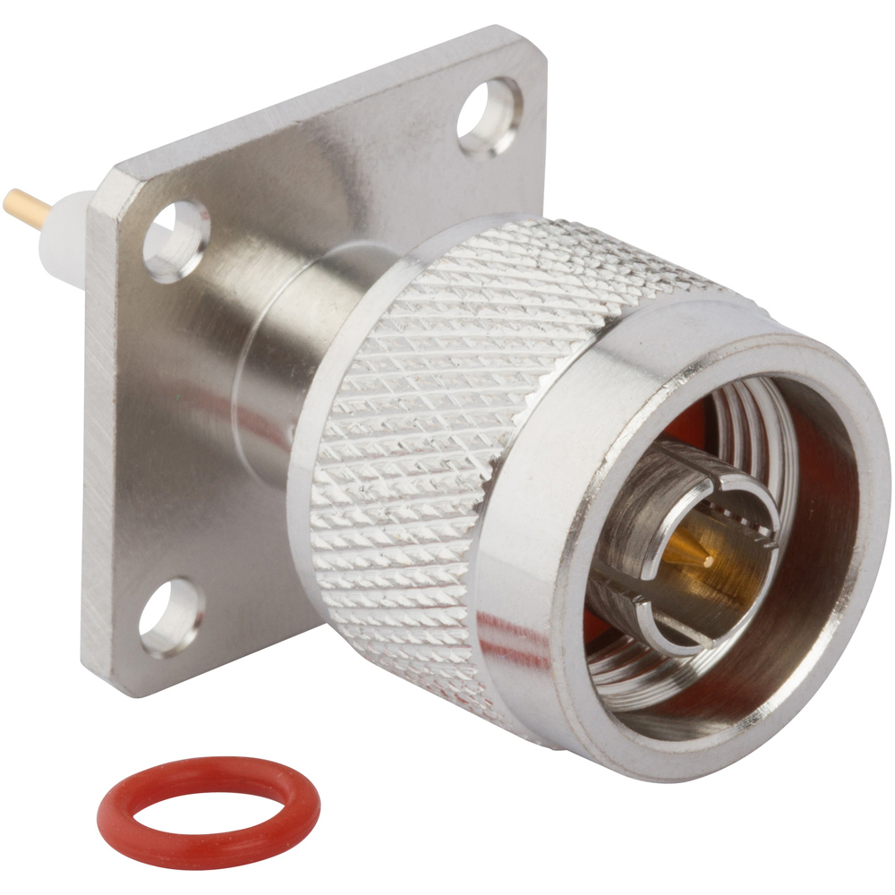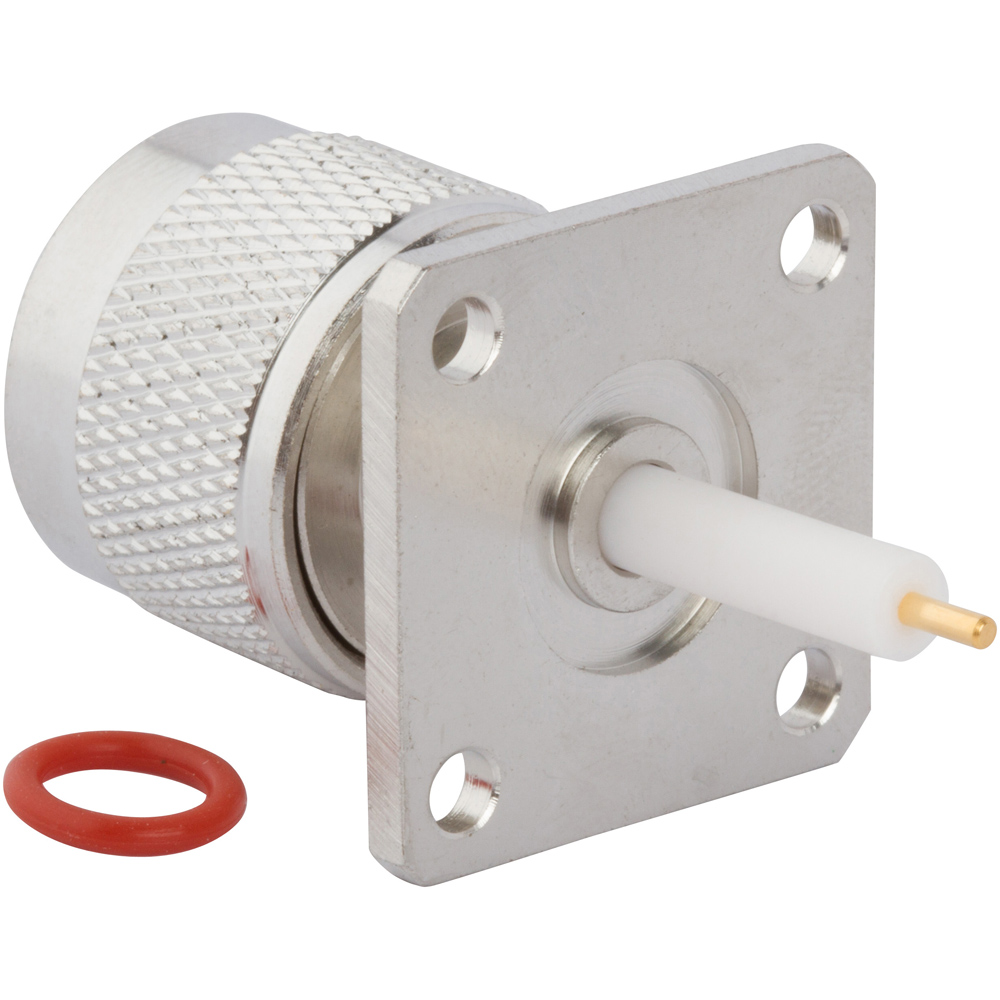 N-Type Panel Mount Plug 4-Hole Flange Round Post 50 Ohm