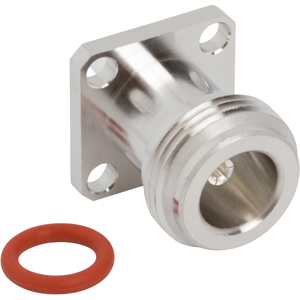 N-Type Panel Mount Jack 4 Hole Round Post 50 Ohm 0.433 Post 0.358 PTFE