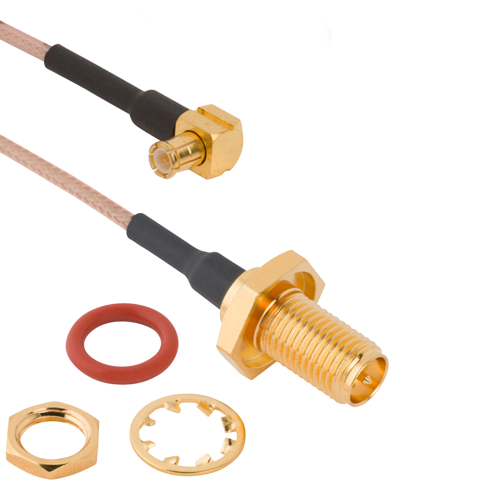 MCX Right Angle Plug to SMA Straight Bulkhead Jack IP67 RG-178 36 Inches
