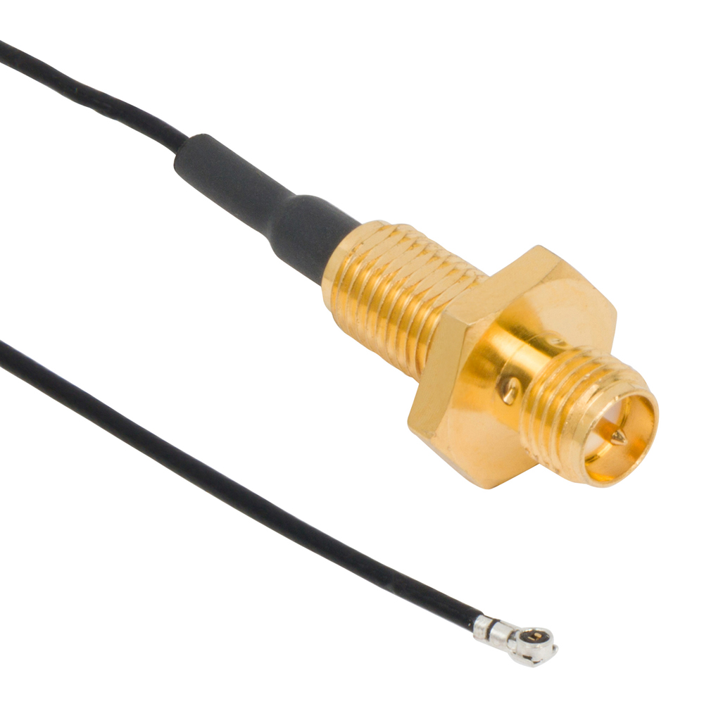 AMC4 Right Angle Plug to RP-SMA Straight Front Mount Bulkhead Jack IP67 1.13 mm 50 Ohm 250 mm