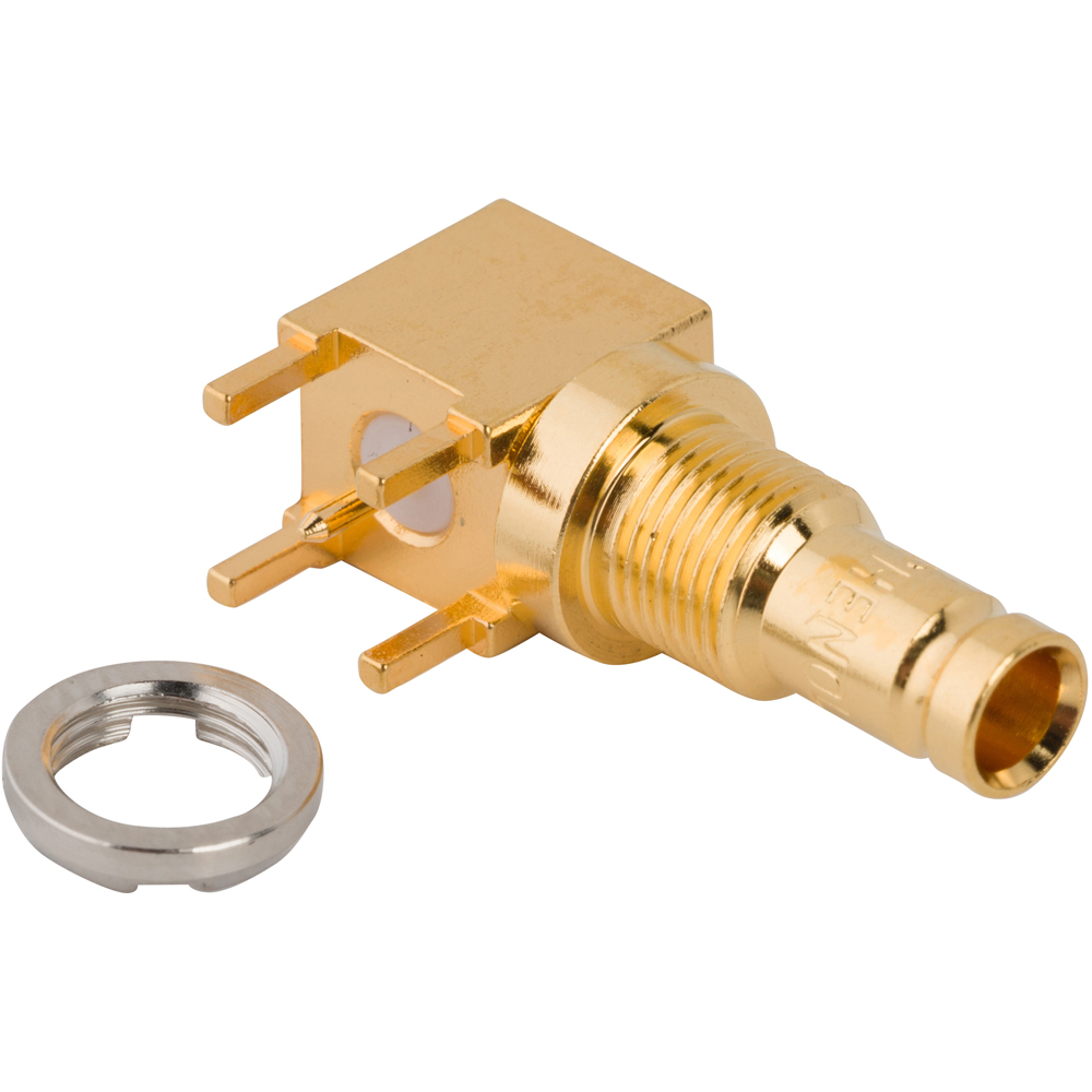 1.0-2.3 Right Angle PCB Jack Through Hole Bulkhead Rear Mount 50 Ohm