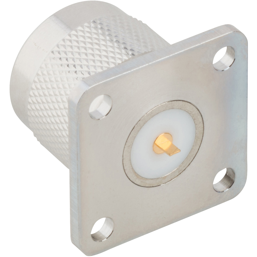 N-Type Panel Mount Plug 4-Hole Flange Flat Tab 50 Ohm