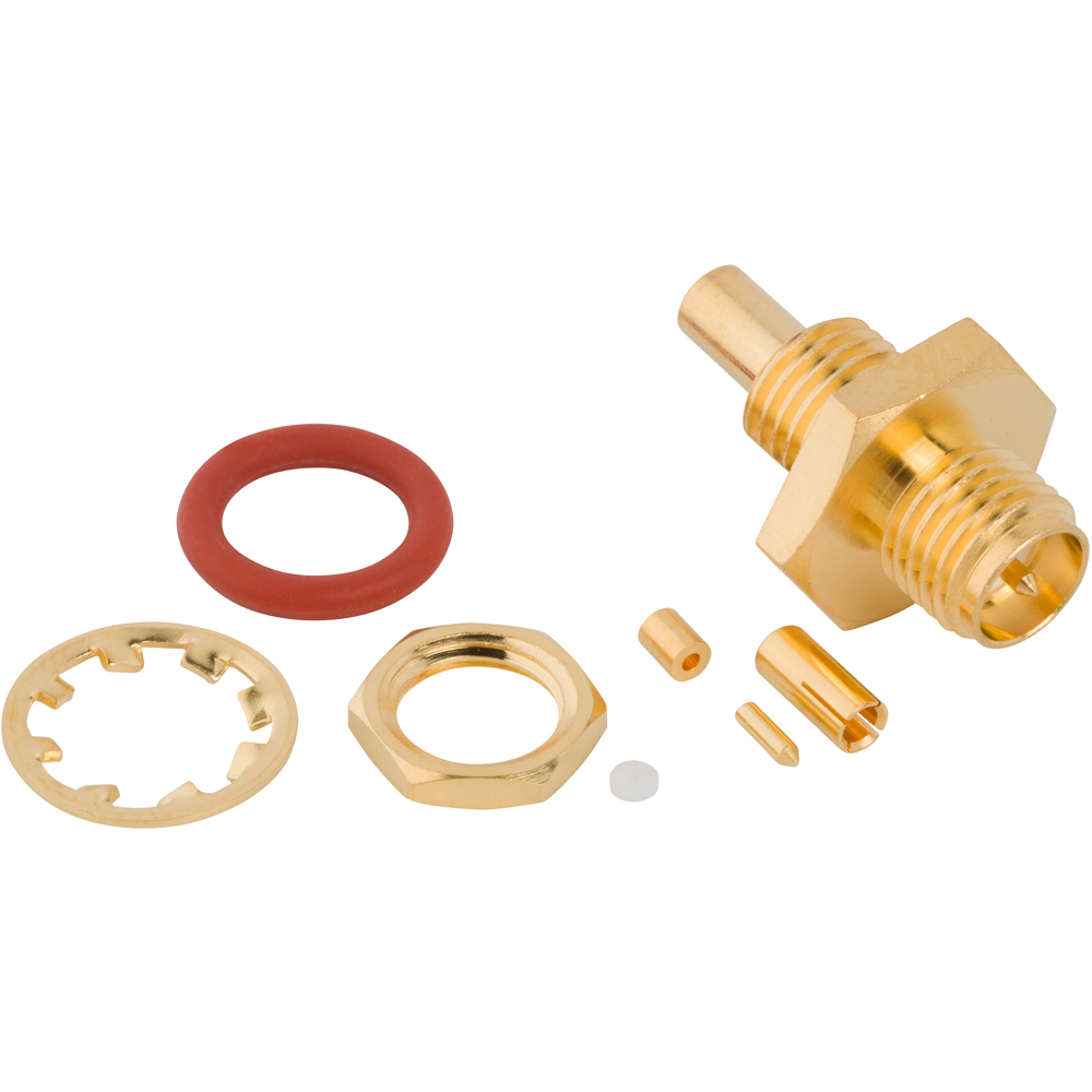 RP SMA Straight Crimp Jack Bulkhead 1.32 mm Micro-cable 50 Ohm