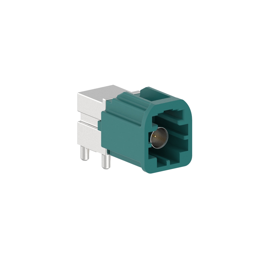 AUTOMATE Type A Mini-FAKRA Single Port PCB Through Hole Right Angle Plug 50 Ohm Z Code
