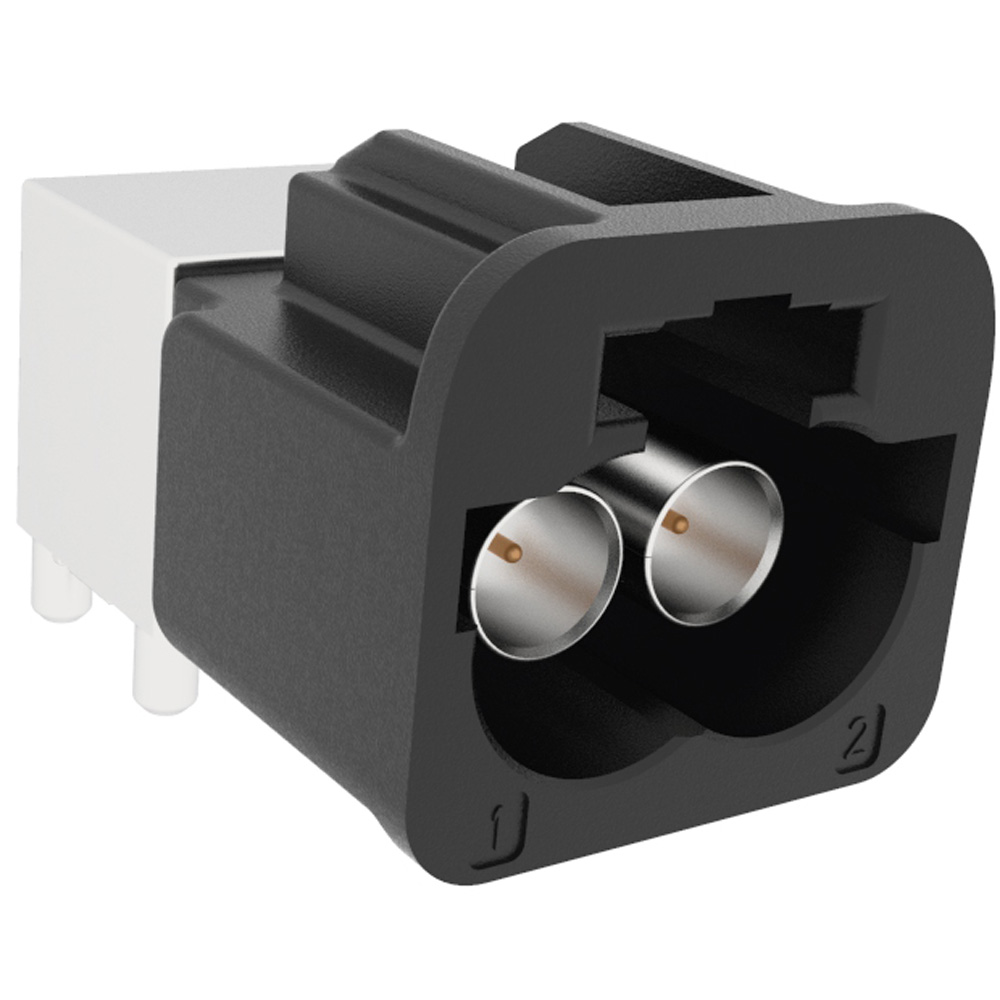 AUTOMATE Type A Mini-FAKRA Dual Port PCB Through Hole Right Angle Plug 50 Ohm A Code