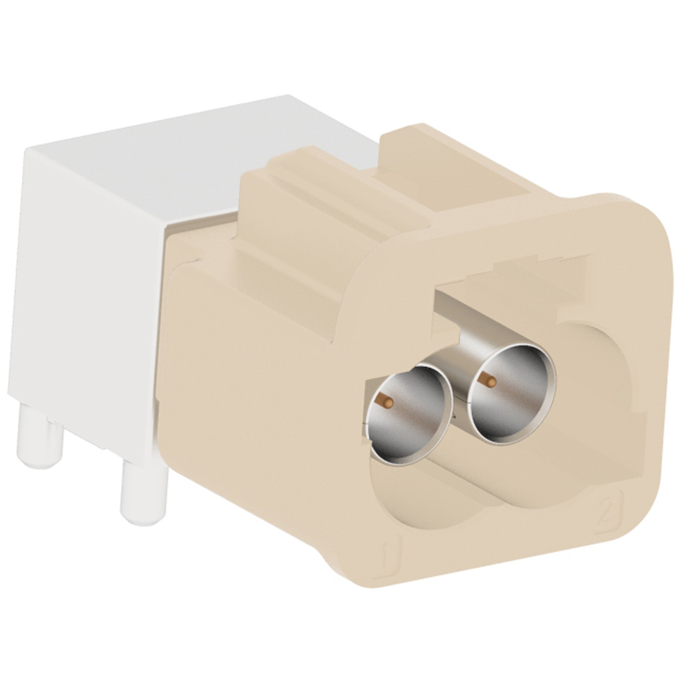 AUTOMATE Type A Mini-FAKRA Dual Port PCB Through Hole Right Angle Plug 50 Ohm B Code